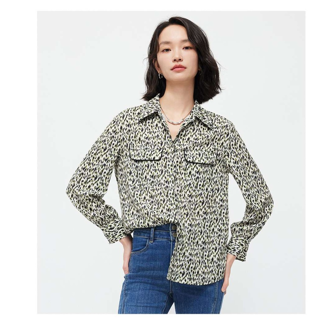 年齢を問わず長く愛用できる、ワードローブに一着は持っておきたいヒョウ柄ブラウスです。