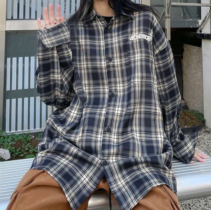 肩幅を広めにとったチェック柄シャツは、レイヤードスタイルにも最適。