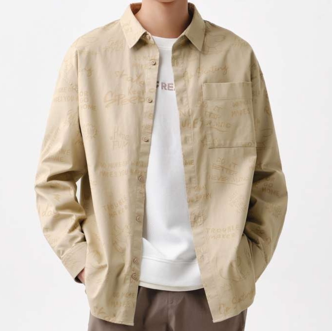 スケートボードをテーマにした遊び心満載の総柄シャツ。手書き風の文字やイラストが印象的なカジュアルデザインは、どんなスタイルにもマッチ。ゆったりとしたシルエットで、柄シャツの魅力を気軽に楽しむことができる一枚。普段使いから特別な日まで幅広く活躍するアイテム。あなたのワードローブに新たなアクセントを加えます。