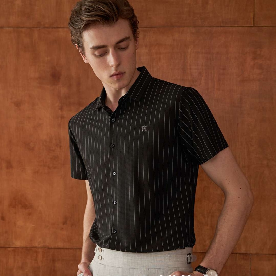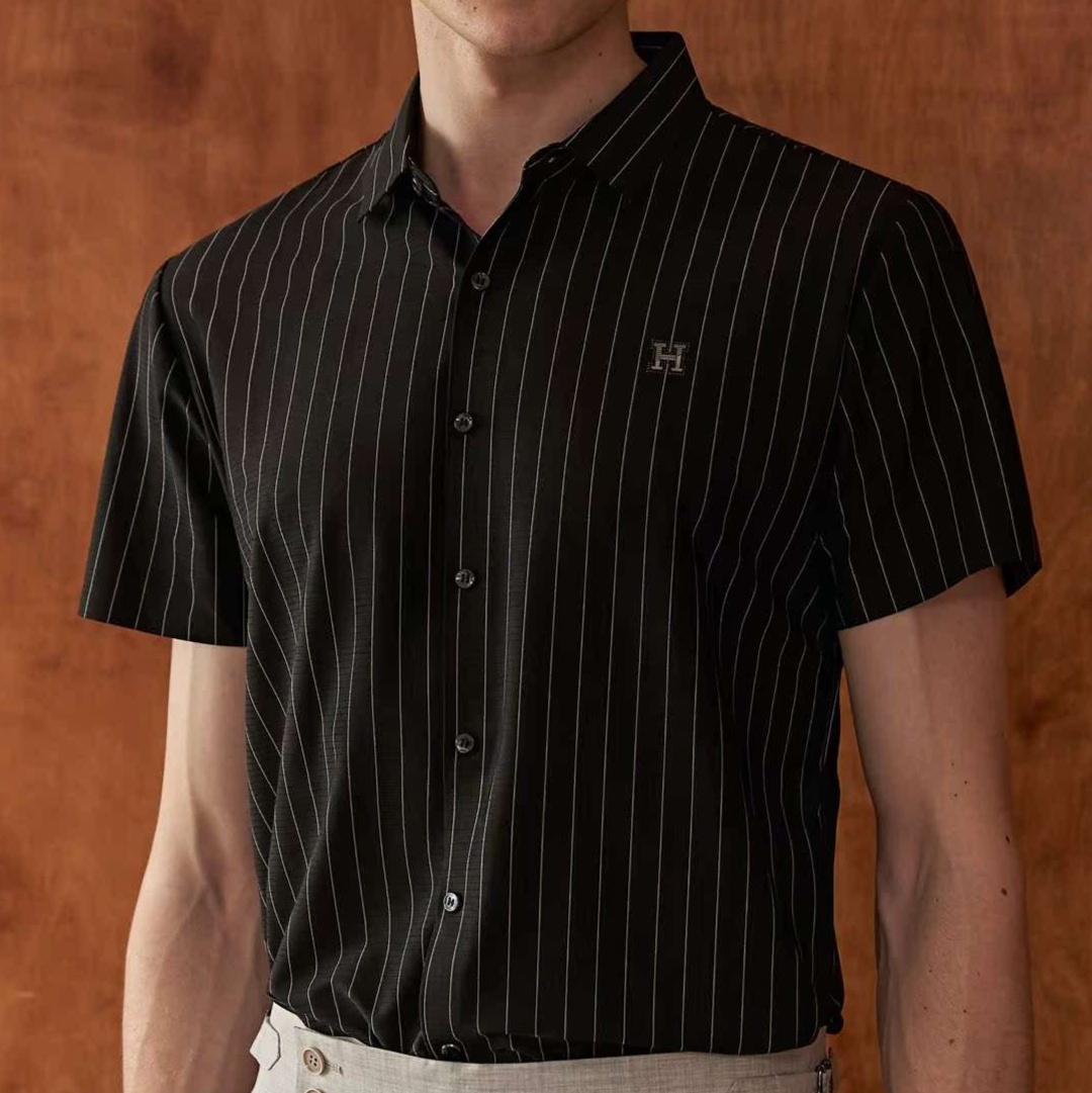 洗練されたストライプ柄が魅力の黒柄シャツ。柔らかな生地は肌触り抜群で、快適な着心地を提供します。シンプルながらもスタイリッシュなデザインは、カジュアルからフォーマルまで幅広いシーンに対応。さりげないアクセントとして、コーディネートを引き立てるアイテムです。洗練された印象を求める方にぴったりの一着。