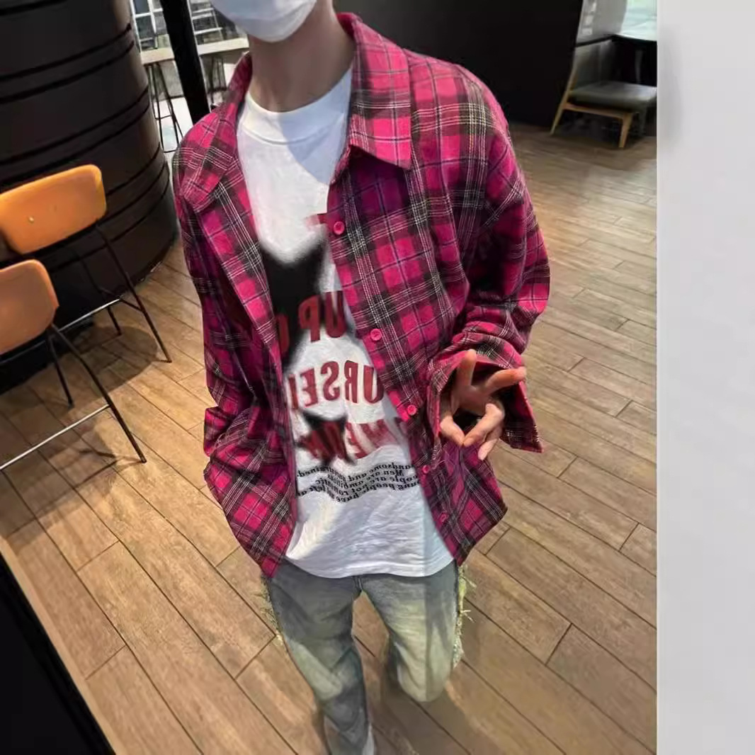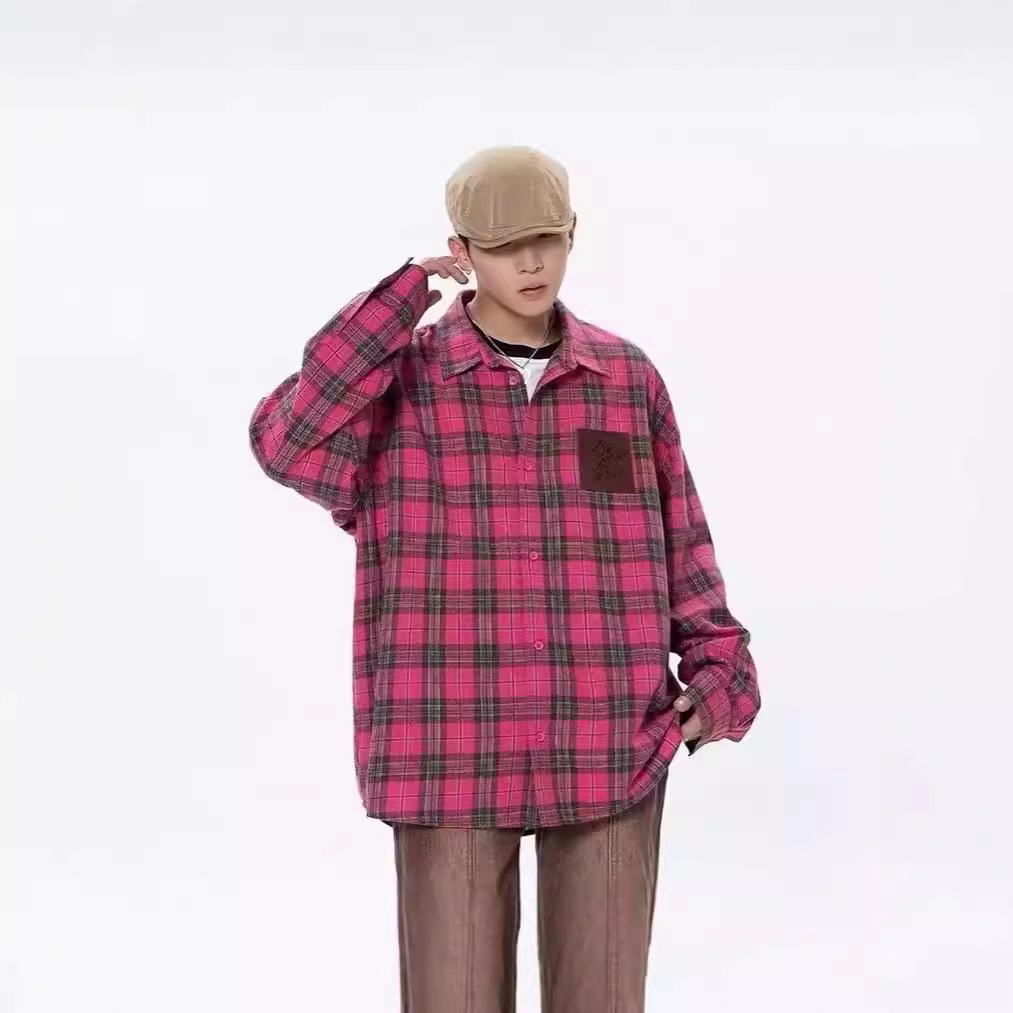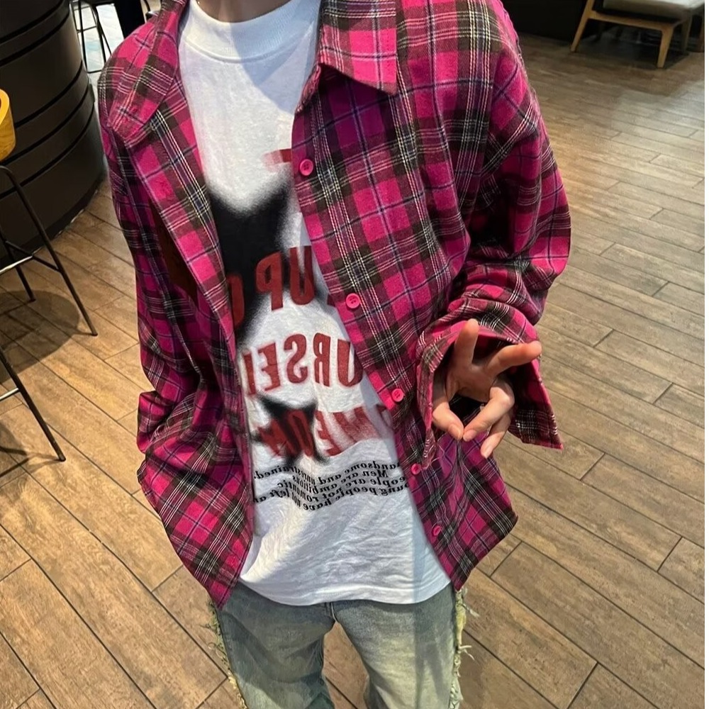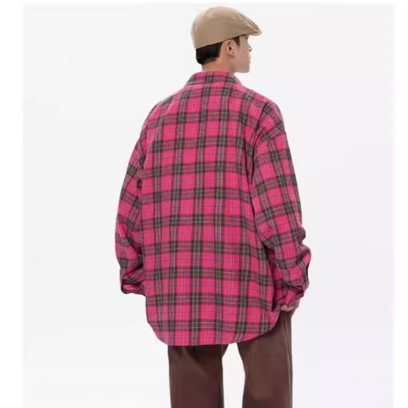 ゆったりとしたビッグシルエットが特徴的なチェック柄シャツです。