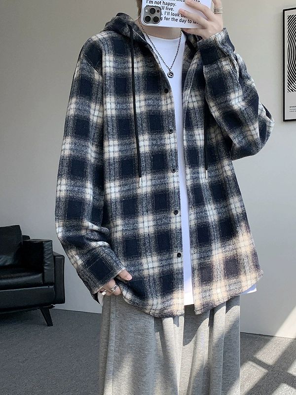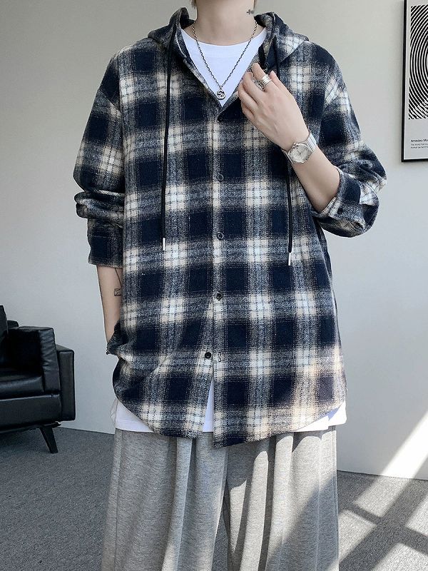 当店の柄シャツコレクションから、おしゃれなネイビー×ホワイトのチェック柄シャツが登場。