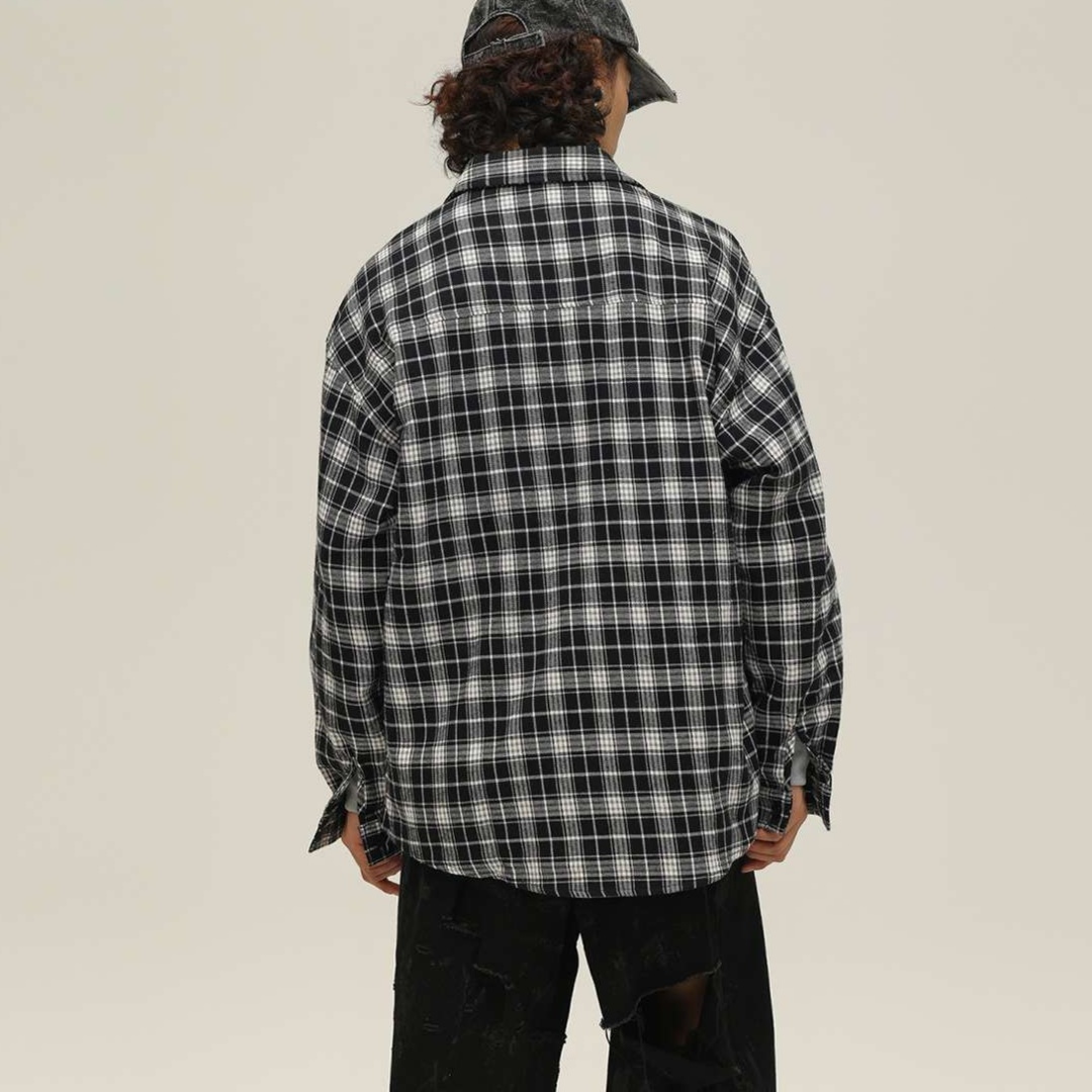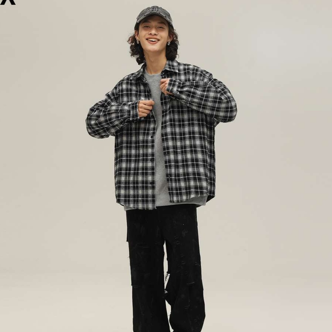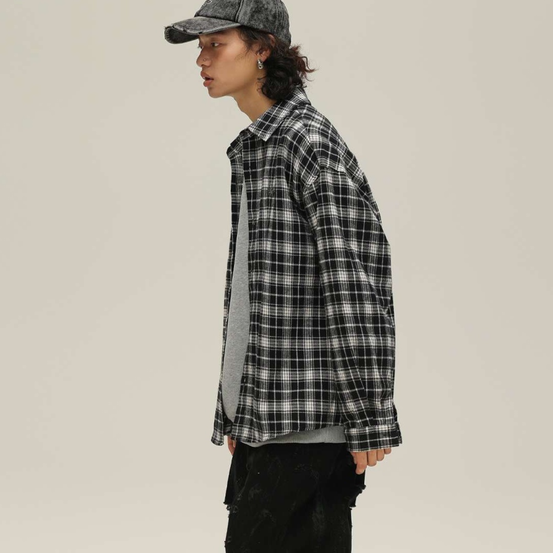 ストリート感覚のチェック柄シャツです。 ゆとりのある身幅と肩幅で、リラックス感のある着こなしを演出します。 柄シャツの定番デザインながら、現代的なサイジングで若者向けのアイテムに仕上げました。