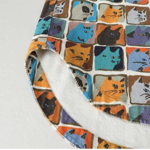様々な表情の猫たちをタイル状に配置した遊び心溢れる柄シャツ。