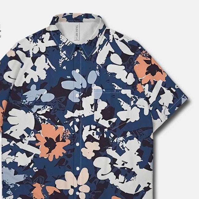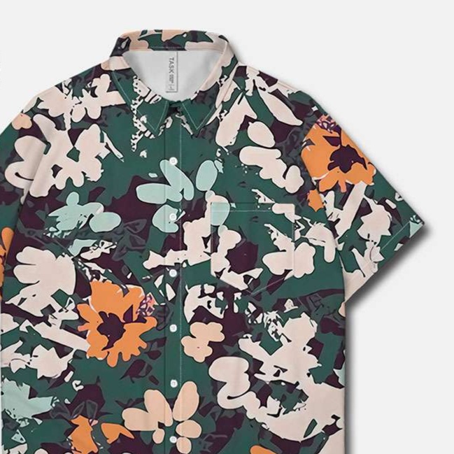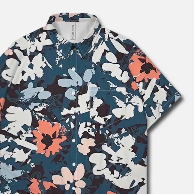 花柄シャツに水彩画のような優美なタッチで描かれた抽象的な花々が散りばめられています。柄シャツとしては珍しい芸術性の高い仕上がりで、着る人の個性を引き立てる一着です。シンプルな着こなしのアクセントとして最適な逸品です。