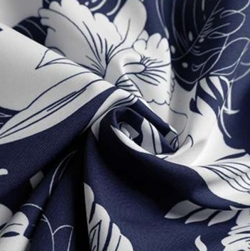 モダンな配色の大きな花と葉のプリントが夏らしい開放感を演出