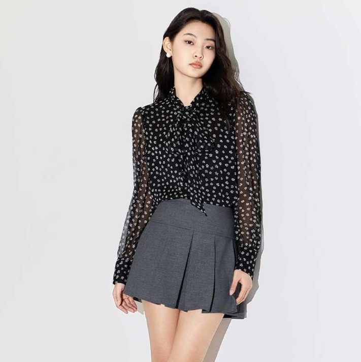 シアー素材を使用したこの花柄シャツは、小花柄が上品に映え、華やかな印象を与えます。フロントのリボンがアクセントとなり、女性らしさを引き立てるデザイン。長袖仕様で透け感のある生地は優美なシルエットを演出し、軽やかな着心地を実現しました。どんなシーンにもマッチする一枚で、スタイリングの幅が広がります。