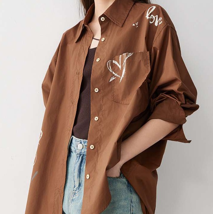 手描き風のハートマークが特徴的な総柄シャツ。