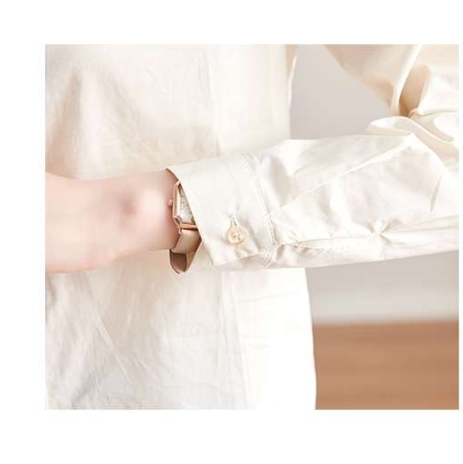 フロントの小花刺繍がさりげない上品さを演出し、シンプルながら華やかさをプラス