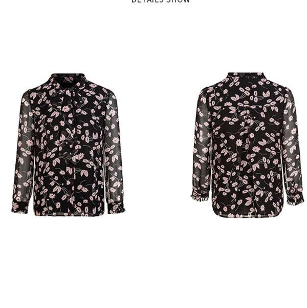 黒を基調にした柄シャツ、しなやかな生地感が魅力。花柄のデザインがエレガントな印象を与え、フロントのリボンタイが洗練されたアクセントに。袖のボリュームと透け感のある素材が、フェミニンな雰囲気を引き立てる。オフィスシーンにもカジュアルなお出かけにもぴったりな一枚。多様なスタイルに合わせやすく、ワードローブの定番アイテムとして活躍すること間違いなし。