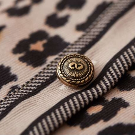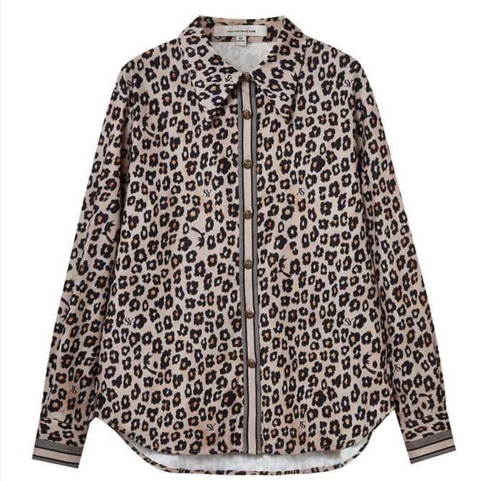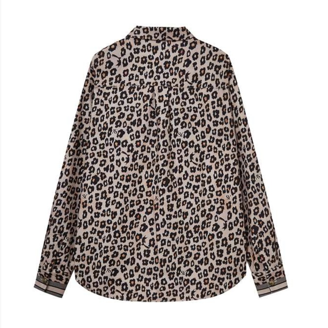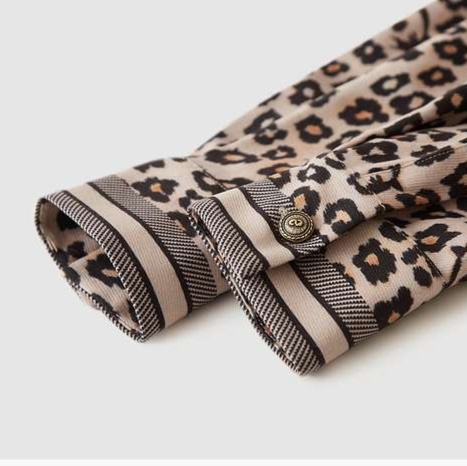 滑らかな素材で作られたヒョウ柄シャツブラウス。襟元のリボンと袖口のラインが絶妙なアクセントとなり、上品さを引き立てる。デイリーコーデに華やかさをプラスし、特別な日にも最適なアイテム。ヒョウ柄の個性がありつつ、どんなスタイルにも合わせやすい一枚。シンプルながら存在感のあるデザインで、着る人の魅力を引き出す。