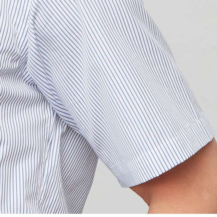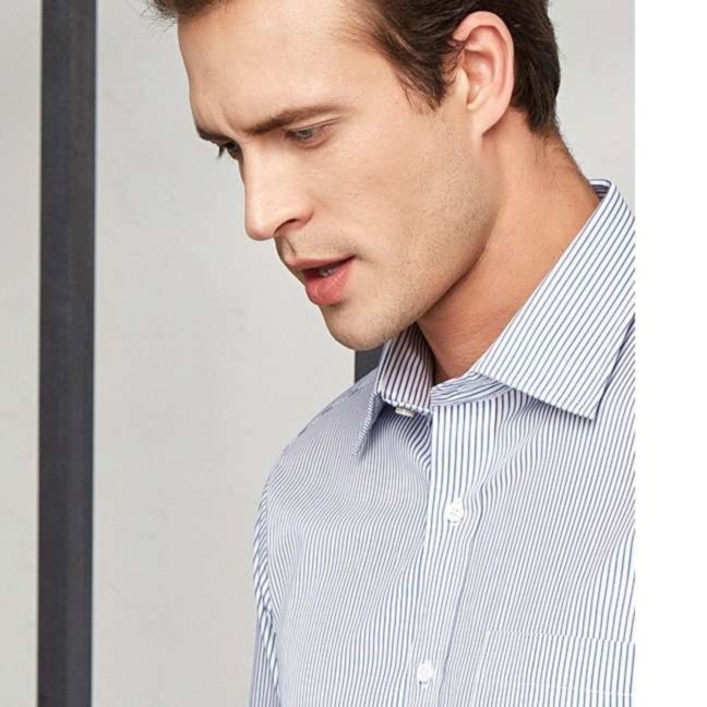 細身のストライプが織りなす洗練された印象で、ビジネスシーンに最適な品格を演出