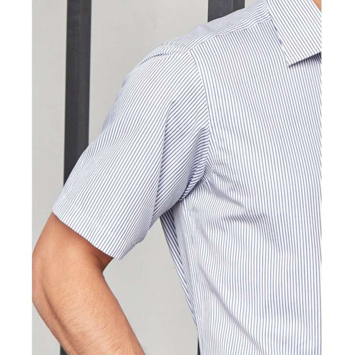 しなやかな生地感が心地よい、総柄シャツ。爽やかな縦ストライプが都会的な印象を与え、ビジネスシーンからカジュアルな日常まで幅広く活躍。上質な縫製により、快適な着心地を実現し、どんなスタイルにもマッチする一着。おしゃれを楽しむための必須アイテムです。