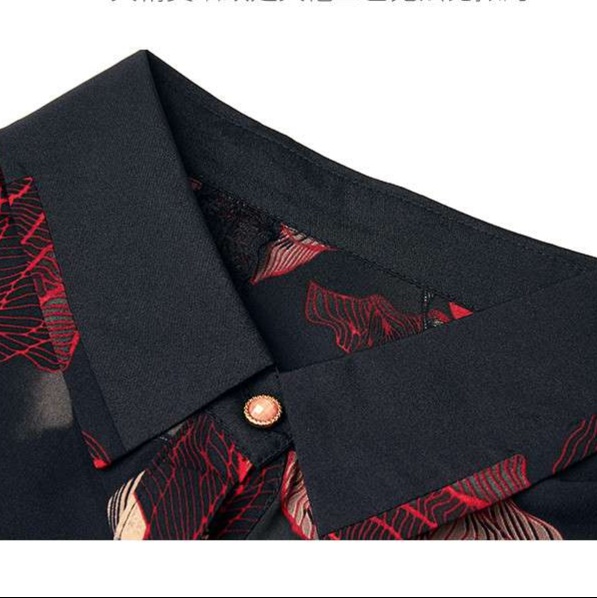 赤と黒を基調とした大胆な花柄が印象的で、モダンでアート性の高い雰囲気を演出